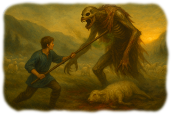 From the bog burst satyrs and hobgoblins, their shrieks splitting the air as they lunged toward him. Charmâs eyes flashed as she cried out, âThe Philistines are upon you!â Her voice twisted into a smirk, arms flung wide in cruel theater. âSave me, Seeker!â