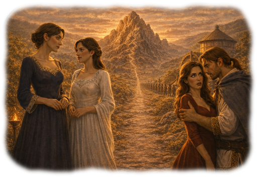The other was as different as night from day, yet no less striking. Her dress was black, trimmed in gold, and her hair was drawn back neatly. She carried herself with a quiet confidence—pride, even—as one accustomed to admiration from both men and women alike, yet so far above it that she scarcely seemed to notice.
