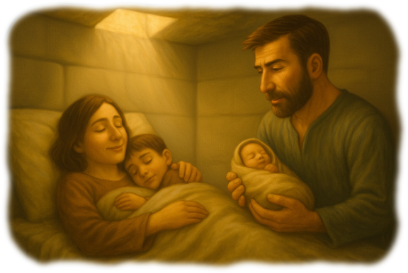 Beside the hearth stood a wide-mouthed clay jar she hadn’t noticed before—worn and chipped, holding only a few handfuls of meal—and a small clay cruse with a narrow neck, filled with golden oil.  Just enough for several small loaves of bread.  The hearth itself was small and plain, yet large enough to bake them.  With their provisions stolen, this would sustain them only for a day, and they would need to continue on.