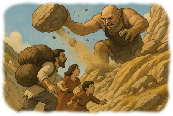 Days turned into months, yet the giant lingered at the cave’s mouth. And still the flour never ran out, and the oil never ran dry. So they remained in the Cave of Resolution until the time came for Beautiful to give birth to Wonderful.